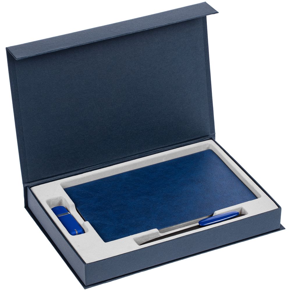 Мы гарантируем, что у нас самая низкая цена на Коробка Silk с ложементом под ежедневник 13x21 см, флешку и ручку, ver. 2, темно-синяя, которые можно найти в интернете.