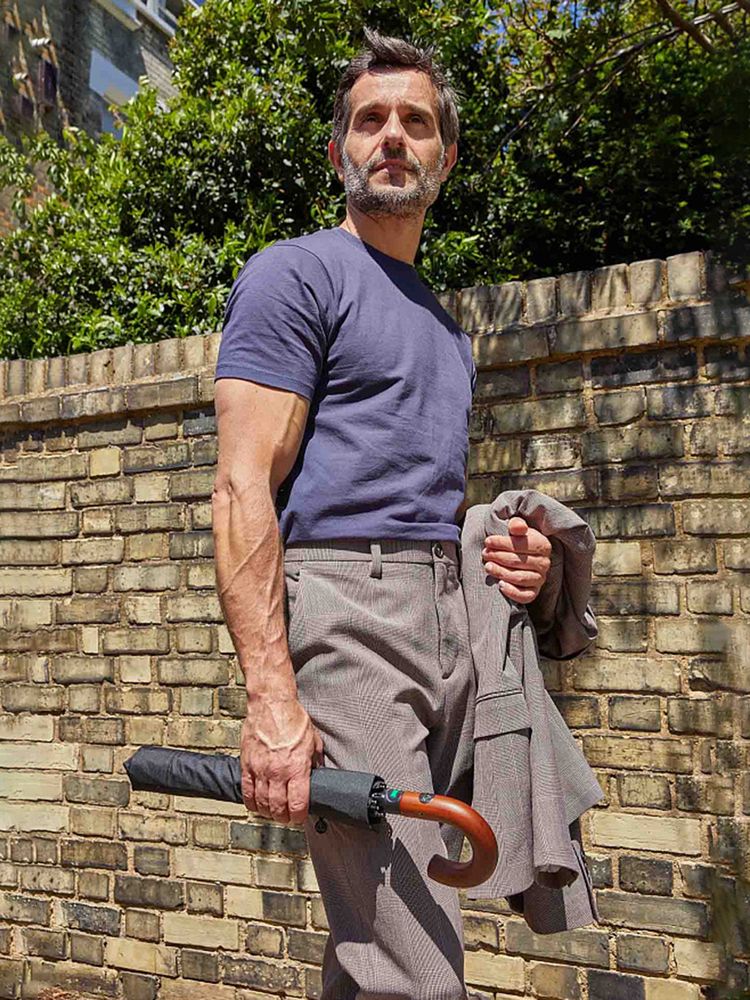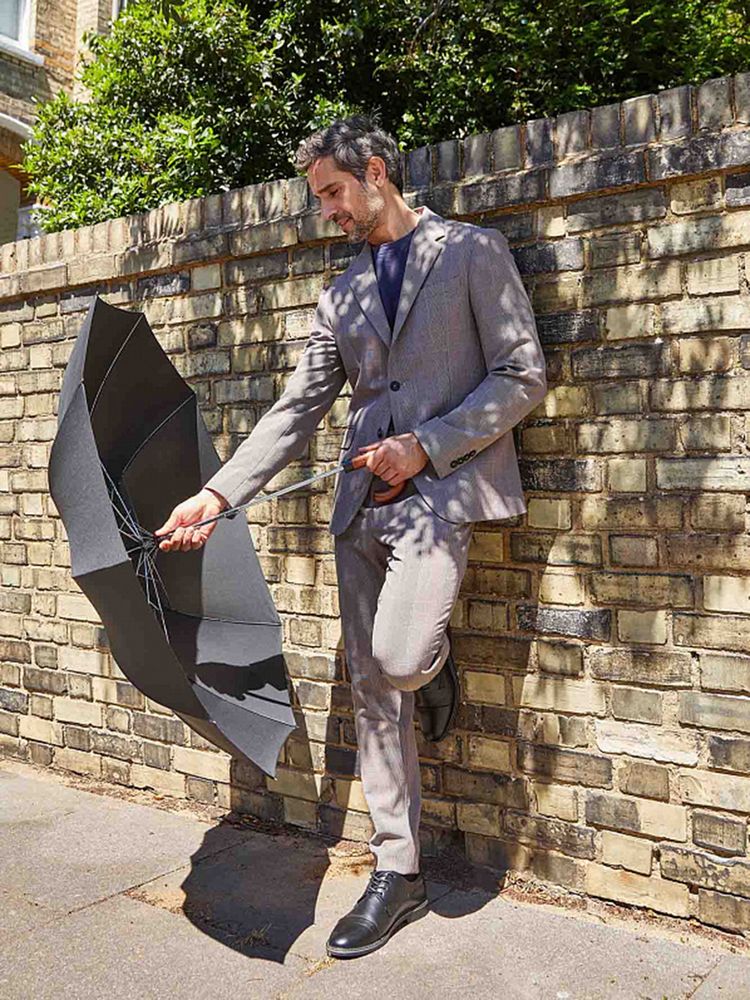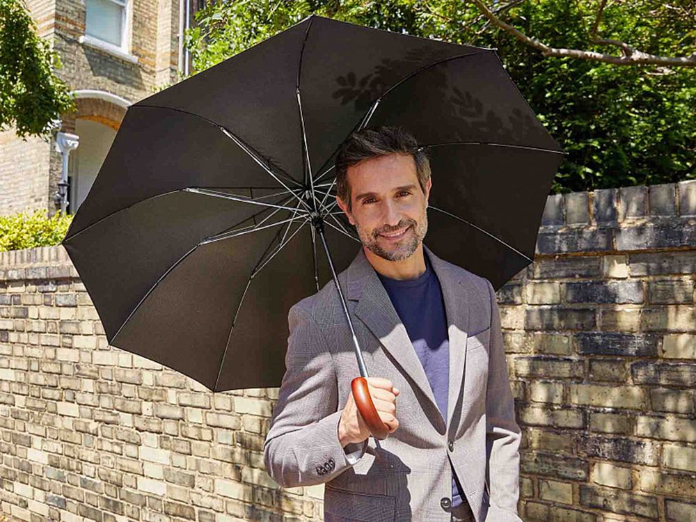 Идеальная модель для тех, кто не задается целью найти легкий и короткий складной зонт-«механику», а скорее, обрадуется старому доброму увесистому и основательному полуавтомату. У модели ветроустойчивая конструкция. Рукоять выполнена из массива дерева и благодаря натуральности материала невероятно комфортно ощущается в руке.