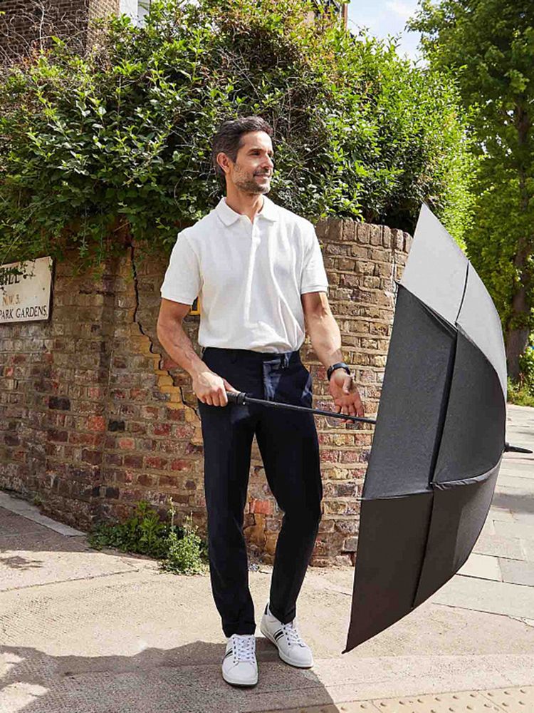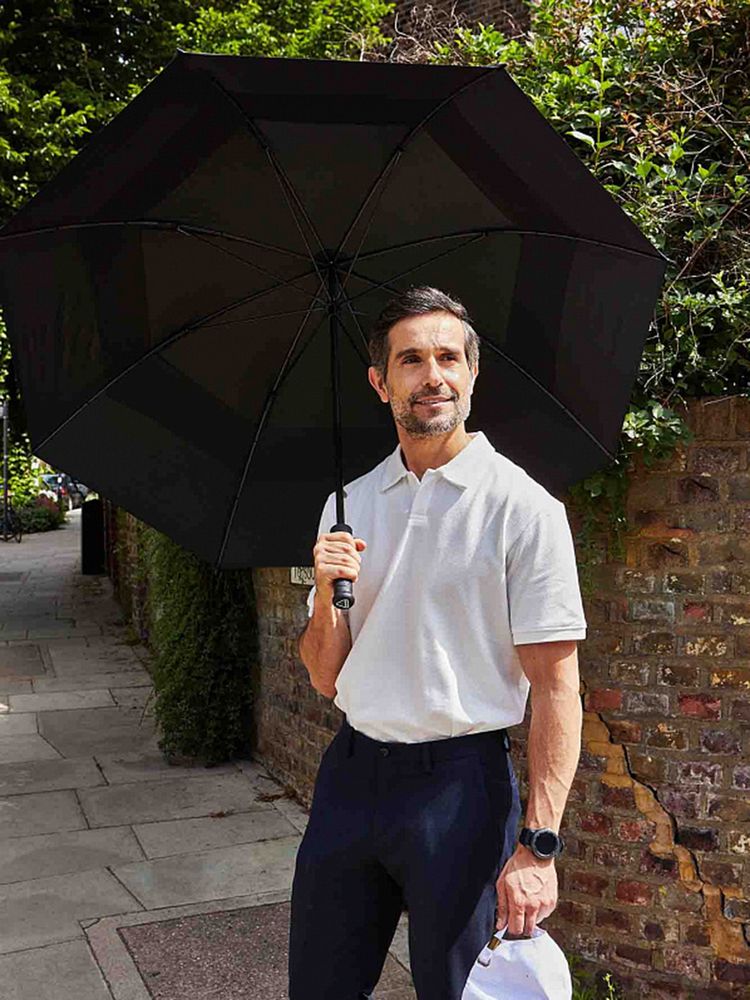 Двойная конструкция купола уменьшает парусность зонта и помогает уверенно удерживать его при сильных порывах ветра, а ручка с покрытием софт-тач не скользит в руке. В закрытом виде зонт фиксируется двумя хлястиками с липучками, а спицы заправляются под специальное подвижное кольцо.