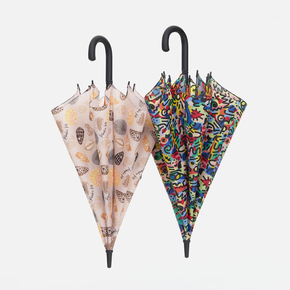 В стоимость входят запечатка полотна бесшовным паттерном методом сублимации, раскрой, пошив купола и сборка изделия. В основе зонта использован каркас с цветными элементами на спицах.